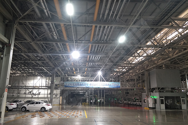 | 項(xiàng)目說明 | 北京現(xiàn)代汽車一、二、三工廠及發(fā)電機(jī)廠車間原來裝的6102盞400W金鹵燈,現(xiàn)全部用我司compactII系列150W鍛壓工礦燈替換,廠房地面平均照度達(dá)到300Lux以上,項(xiàng)目已于2017年8月全部安裝完畢并投入使用。 |